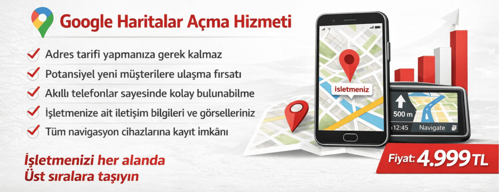 Google Maps üzerinden gelen müşteri trafiği; telefon aramaları, yol tarifi talepleri ve fiziksel ziyaretler olarak ölçülebilir sonuçlar sunar. Bu da Google Maps’i yalnızca bir harita uygulaması değil, işletmenizin büyümesini destekleyen stratejik bir dijital pazarlama kanalı haline getirir. Profesyonel Google Maps yönetimi, işletmenizin yerel pazarda güçlü, güvenilir ve ulaşılabilir bir marka olarak konumlanmasını sağlar.